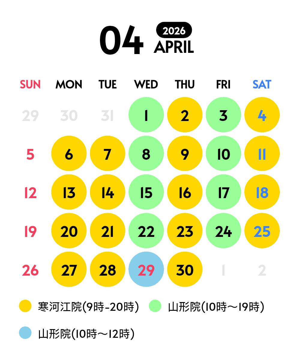 下記の各院(寒河江院・山形院)の診療時間をご確認いただき、ご連絡をお願い致します。